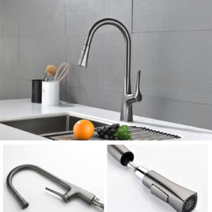 – Chức năng: Nóng lạnh + Rút dây + Đầu vòi khớp xoay + 2 chức năng Sprayer (Dòng chảy phun mưa, tạo bọt khí) + Xoay 360 độ
